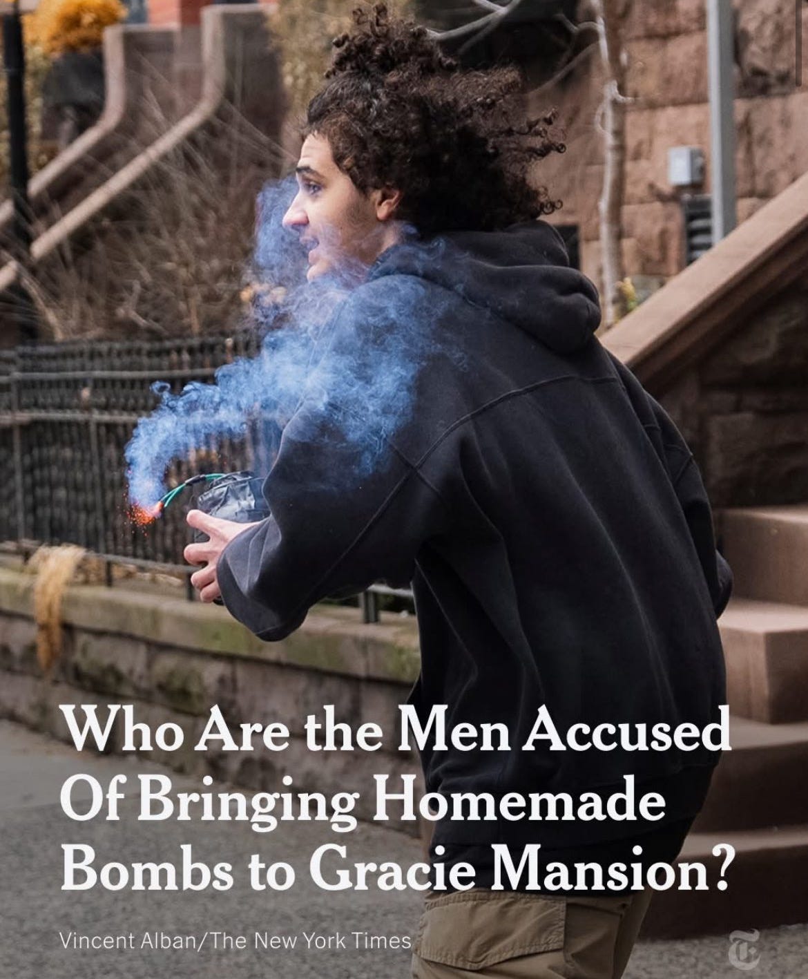 Two ISIS-inspired Muslims threw bombs at peaceful protesters in New York City outside Mayor Mamdani’s residence last week. The protesters were voicing their opposition to the threat of Islam in the city — and they clearly had a point — when a much larger, pro-Islam counter-protest formed nearby featuring a man in a Palestinian keffiyeh waving the red flag of Shia martyrs and comedian Walter Masterson shouting into a bullhorn, “I’m born and raised in New York and we want everyone to stay in New York! You don’t get to come from outside and then tell everyone else—” But he was cut off when, in a chef’s kiss of poetic irony, one of the terrorists shoved him aside and screamed Allahu Akbar! as he threw his bomb right over Masterson’s head.