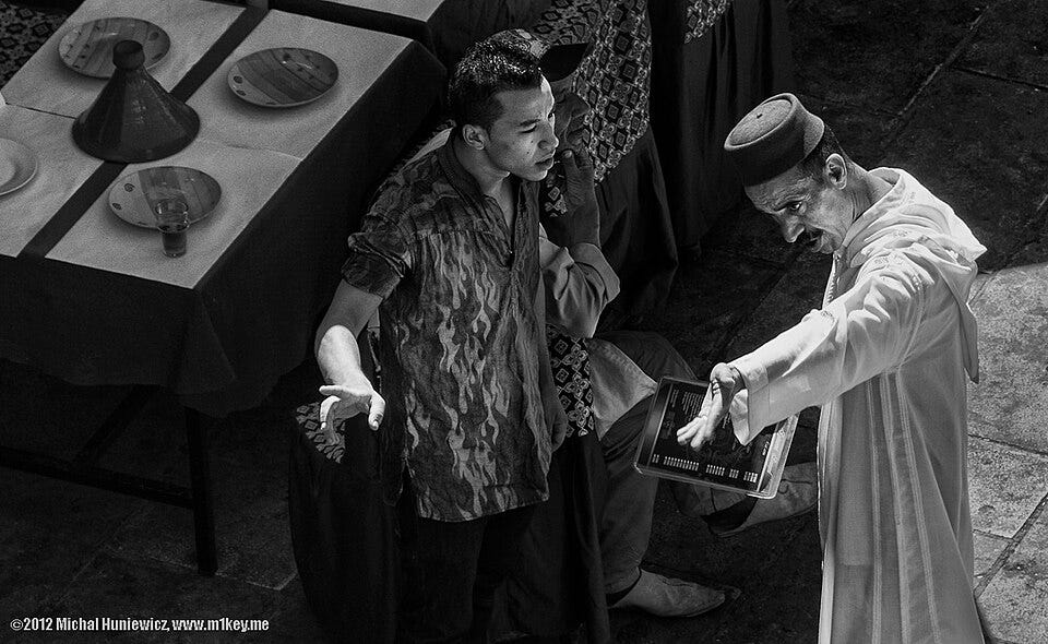 Michal Huniewicz says in Fez, Morocco, where he took the photograph above, he met a young man named Rachid and had the following exchange: