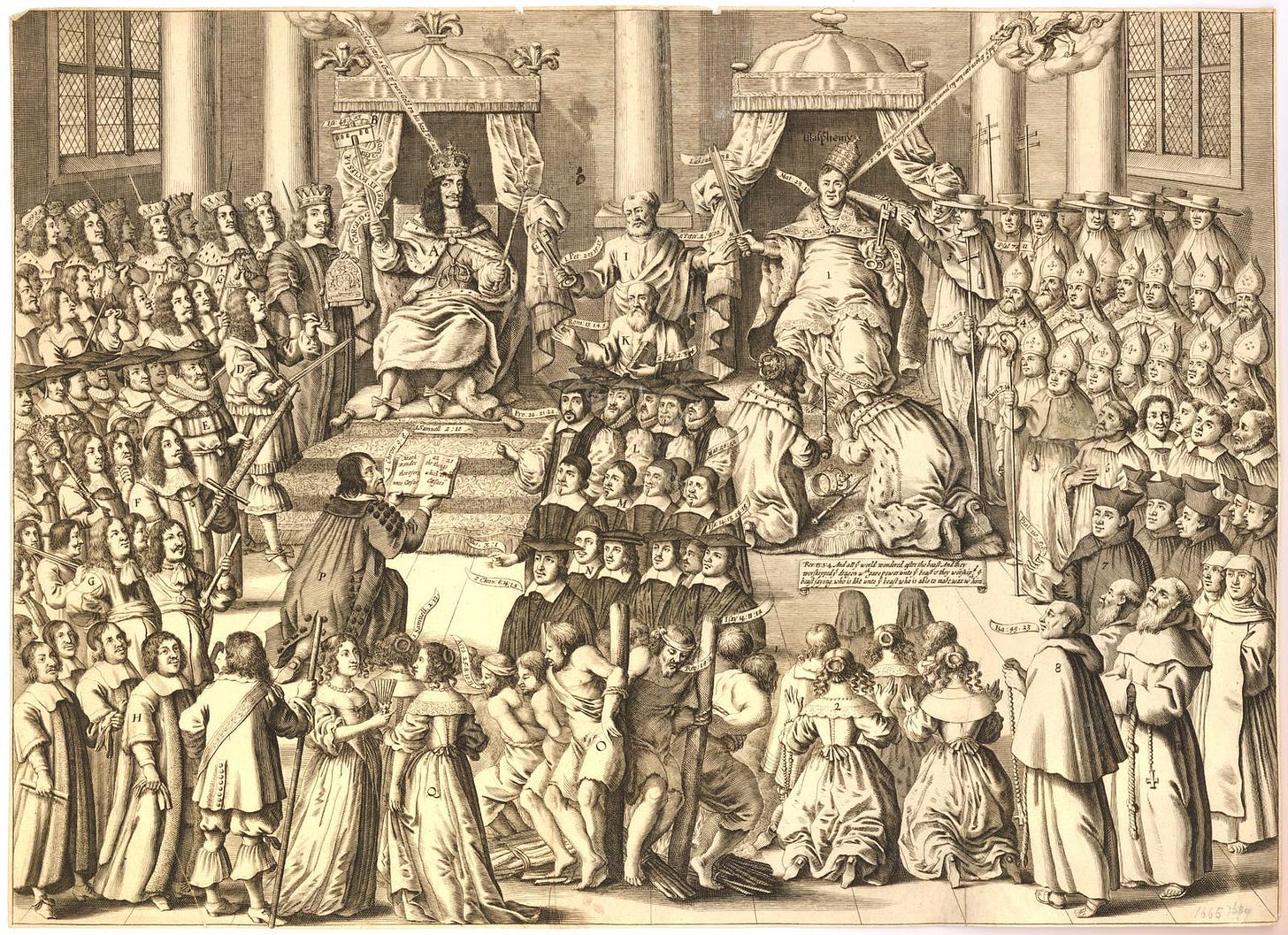 But reading this, I am reminded of Henry VIII, who similarly refused to acknowledge a power other than his own because it said no to something he wanted to do, and how that set the stage upon which these later players all strut and fret their hour, as Shakespeare would say. And so began the struggle for power, and the emergence of a system to keep it in check.