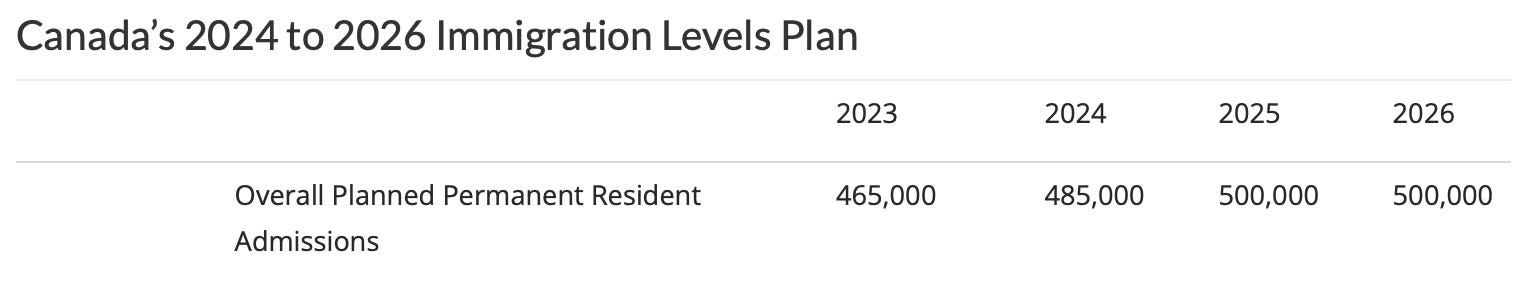 The only comparable period was in 1913, when Canada admitted over 400,000 immigrants, a record that stood for more than a century until Trudeau surpassed it in 2021. He has admitted more than 3 million people so far, and had planned to bring in another half a million every year for the next several years. In 2022, 95% of population growth came from immigration.